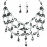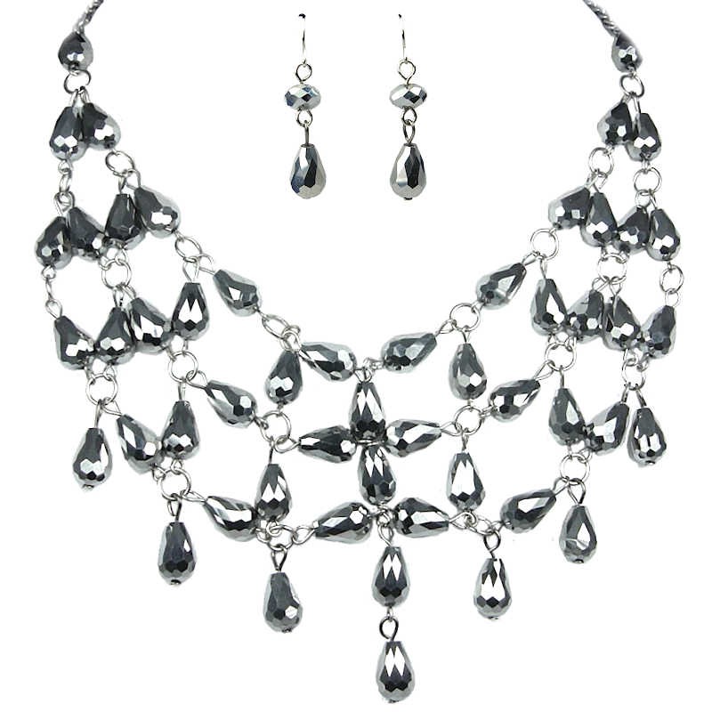 Silver Teardrop Glass Bead Bib Statement Necklace Earrings Set
