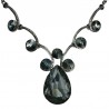 Antique silver plated smokey grey teardrop rhinestone necklace features a large smokey grey faceted teardrop rhinestone as focus point, adorned with smokey grey round rhinestones.