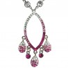 Pink diamante open teardrop dangle necklace adorns with clear, pink and hot pink diamantes in a silver plated open teardrop dangling with three paved diamante teardrops and hot pink diamante drops, set on clear diamantes linked to silver plated teardrop chain.