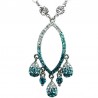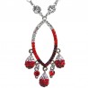 Red diamante open teardrop dangle necklace adorns with clear, red and burgundy diamantes in a silver plated open teardrop dangling with three paved diamante teardrops and red diamante drops, set on clear diamantes linked to silver plated teardrop chain.