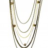 Simple strands in different types of chain to create different effect piece of long costume jewellery, burnished brass multi-layer long chain necklace consists of burnish brass plated in varying type of chains and a strand of rose gold plated cable chain, cascading among multi row at different length, adorn with copper brown cushion faceted beads for trendy women look.