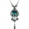 Make your appearance in maximum impact stylish, perfect for everyday wear to transform your outfit with this aqua blue luck teardrop tassel drop long necklace combines luck teardrop pendant adorned with aqua blue acrylic oval rhinestones, metallised silver beads, hanging chain tassel and silver discs.